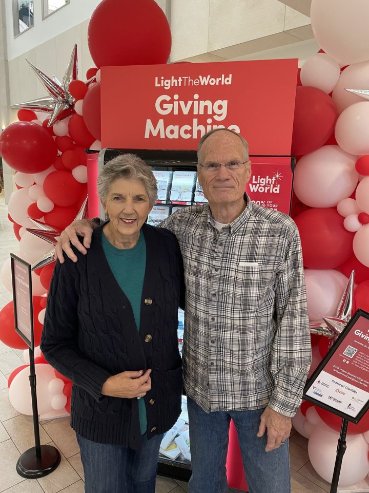 In addition to donating, the Roundtrees have volunteered at the Riverside location, helping visitors understand how the machine works and who benefits from each purchase. Jeff said some donors like taking a photo against a holiday-themed backdrop with the oversized display cards as a way to remember the experience and encourage others to participate, while many choose to give quietly.