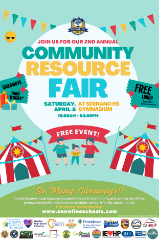 The Snowline School District Community Resource Fair is designed to support and uplift the community by offering access to resources that promote health, safety, and overall well-being.