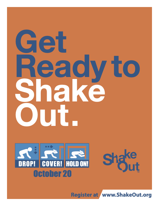 What can you do to get ready for the ShakeOut? Read the ShakeOut flyer to know what to do when the shaking starts. If you or a member of your household are a person with a disability or have access or functional needs, check out these other tips and things to consider during an earthquake.