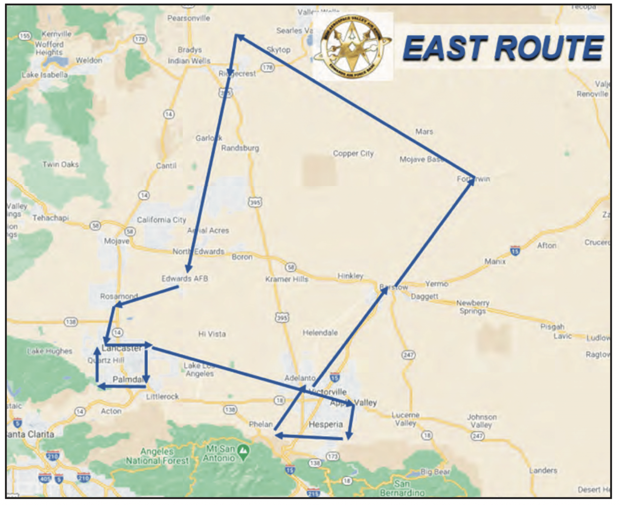 On Saturday, October 10, the aircraft will flyover Lancaster, Palmdale, Hesperia, Victorville, Barstow, Fort Irwin, Ridgecrest, NAS China Lake, and Rosamond. The planes should fly over the Tri-Community en route from Palmdale to Hesperia.