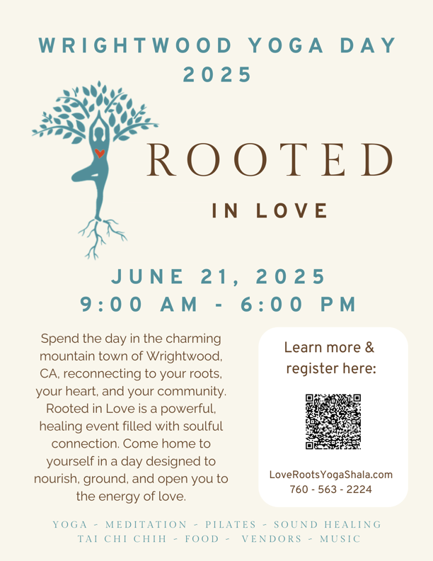 In recognition of the International Day of Yoga, Wrightwood will host an all-day event, “Rooted in Love,” on Saturday, June 21 from 9 a.m. to 6 p.m. The gathering, organized by local Wrightwood yoga studio, the Love Roots Yoga Shala, will take place in a forest setting and features yoga, meditation, Tai Chi Chih, Pilates, and sound healing sessions.
