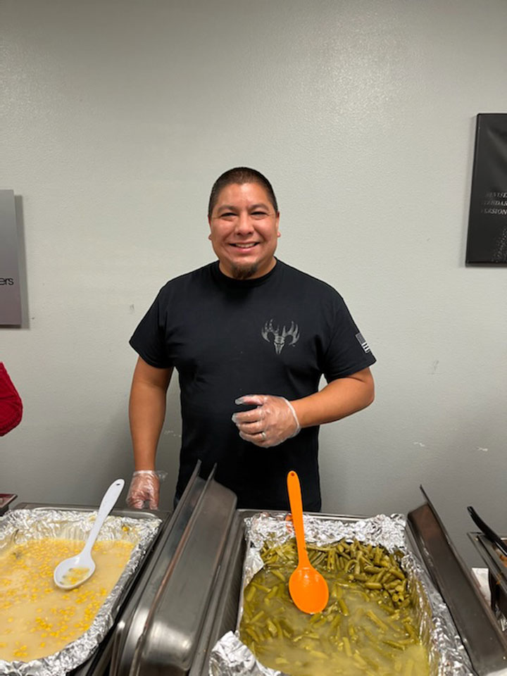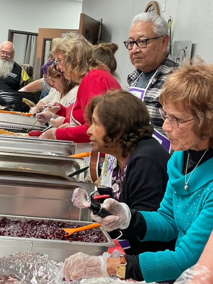 Finally, on Sunday after church services, the church volunteers gathered to set up a thanksgiving dinner for the whole community. Pastor Mike Lemo of High Desert Baptist Church and Pastor Mike Villegas from New Life lent tables for this big event to accommodate as many as needed. Bobby Martin, the owner of My Hero Subs, organized staff and patrons to volunteer, donate, peel, and cook an estimated 100 lbs. of mashed potatoes. Mama Marias helped with the use of their kitchen as their restaurant kitchen because they wanted to help feed thanksgiving dinner to residents of the community.
