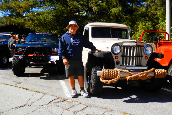 Kevin Nunez, a powerlifter from Azusa who now resides in Wrightwood, was visiting his mother and the new Jeep she was showing on Cedar St., mentioned he owned a tan 1962 Willys truck on display over on Park Drive. This interview took a walk downtown through what seemed like hundreds of Jeeps and Willys vehicles of all shapes and sizes. When we got to Kevin’s historical truck, he explained, “What got me interested in the Willys trucks is that I have twelve family members that served in World War 2, and my grandfather used to talk about the Jeeps and the Willys trucks since I was a kid. Now my daughter wants it.”