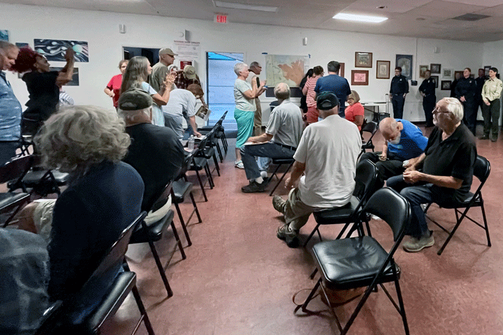 On Thursday, August 11th, the Wrightwood Property Owners Association assembled a debriefing for the Sheep Fire that occurred on the evening of June 11th, 2022. The meeting took place at the Wrightwood Community Building at 7 pm. An estimated 40 people were in attendance, and an additional 30 people tuned in online via Zoom. President of the WWPOA, John Kozyra, stated that the debriefing was to “Make sure people understand the facts. As a community, we are grateful for the fire agency partners and that no structures were burned.” Other members of the WWPOA agreed that a debriefing was essential for members of the community who were still left with questions and speculations as to the cause, oversight, and containment of the Sheep Fire that burned 865 acres. Rita Bemis, a member of the WWPOA, mobilized the panelists, which included members from Cal Fire, Angeles National Forest, San Bernardino County Fire, and the San Bernardino County Sheriffs Department.
